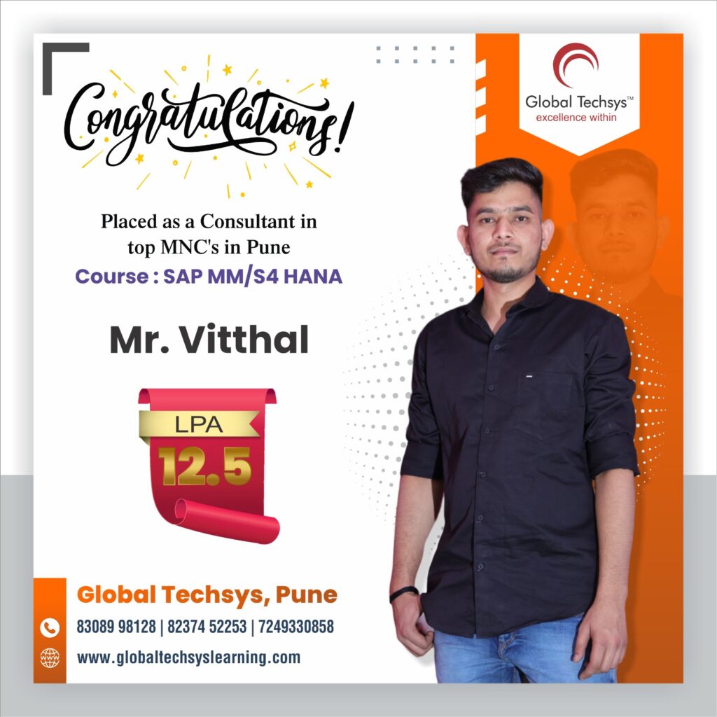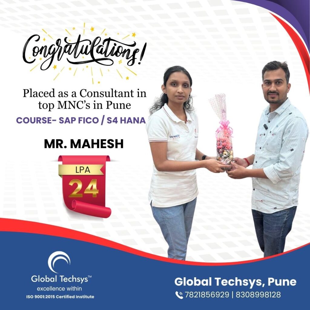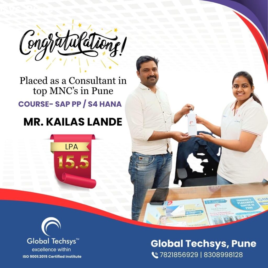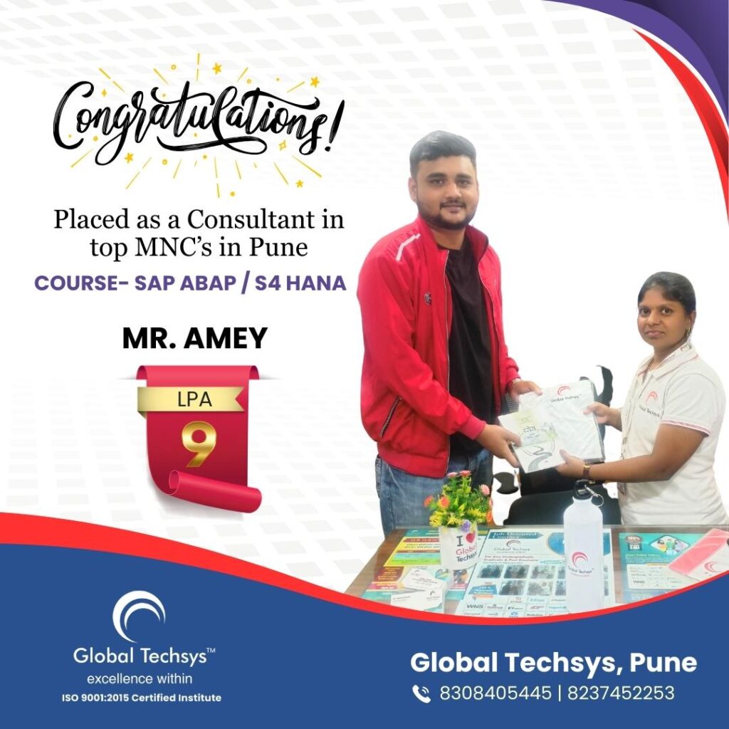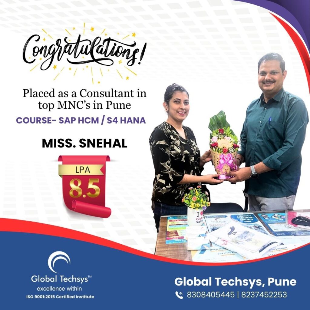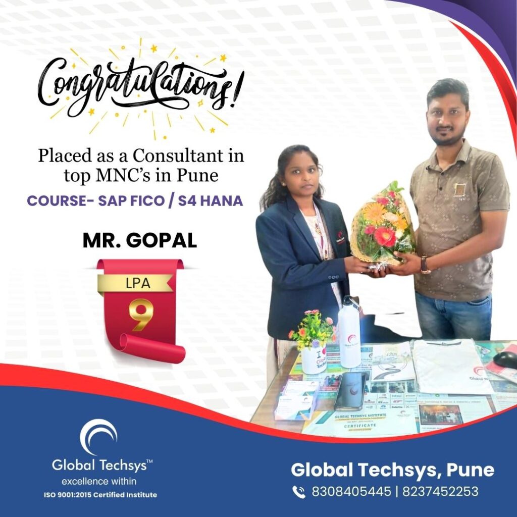 At Global Techsys Learning, our students don’t just learn—they excel. The Placement Gallery is a testament to the dedication and hard work of our graduates who have secured prestigious positions in top companies worldwide. Explore the success stories of our students, complete with their job titles and package details, and see how Global Techsys Learning has helped them transform their careers.